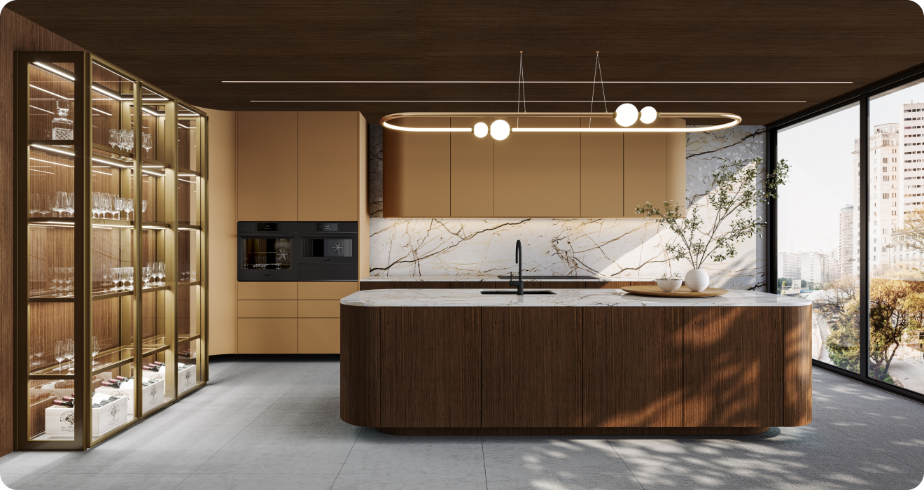 Curvas que adicionam suavidade e sofisticação ao espaço. A lâmina Quercia, com seu tom