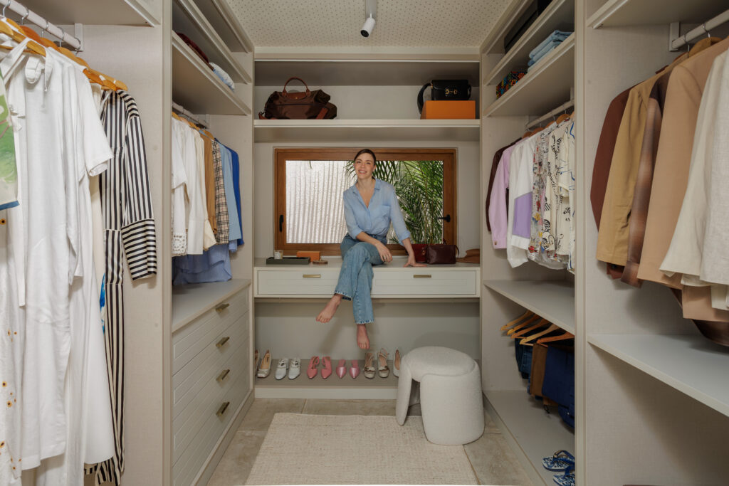 Além de armazenar, o closet celebra a rotina com tudo à vista, tudo acessível, tudo pensado para facilitar o dia a dia e inspirar escolhas.