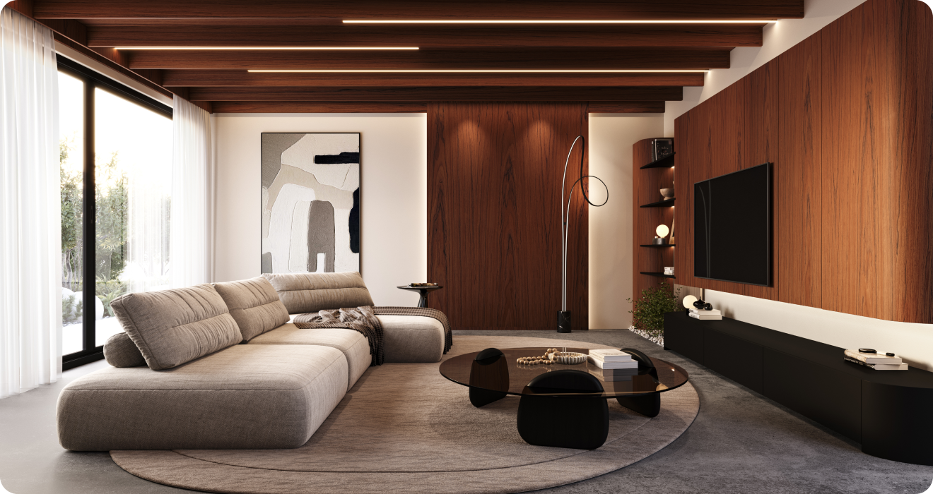 Curvas que adicionam suavidade e sofisticação ao espaço. A lâmina Quercia, com seu tom